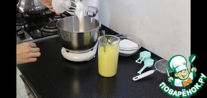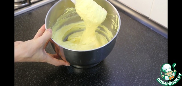 • Вот такая яично-маслянная смесь должна получится. Она жидковата, но при этом пышная и воздушная.
