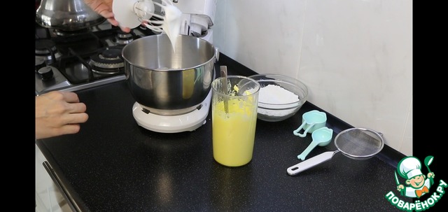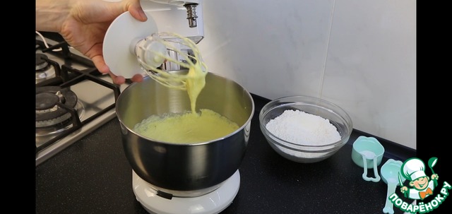 • Когда обе массы взбились, объединяю их. Делать это нужно не долго, на минимальной скорости миксера.