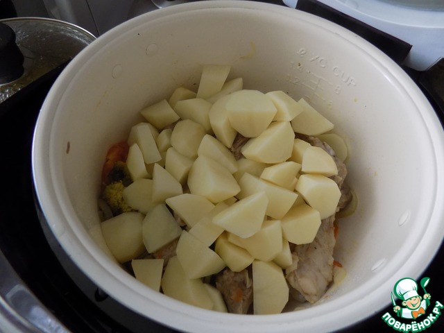 Тушёные свиные рёбрышки с овощами, картофелем и куркумой в мультиварке. Ароматное, сытное блюдо для семейного обеда.