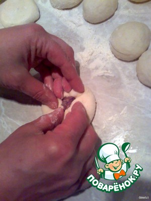 Формуем беляшики, отщипывая от теста небольшие кусочки, -
