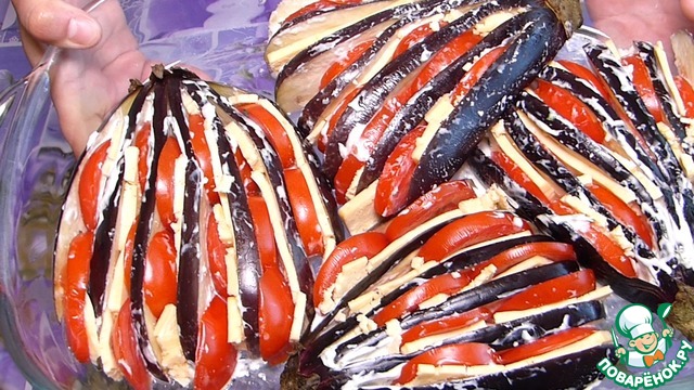 Рецепт «Веер из баклажанов, помидоров и сыра»:
