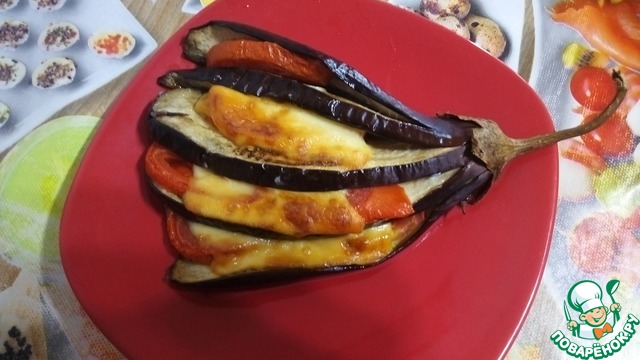 Веер из баклажанов, помидоров и сыра