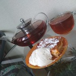 Даём остыть, посыпаем сахарной пудрой и по желанию подаём с шариком мороженого.