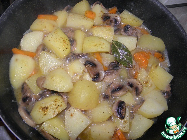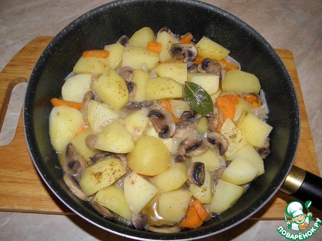И тушим все минут 7-10 (пока картофель не станет мягким)