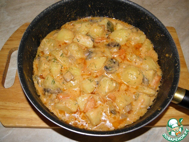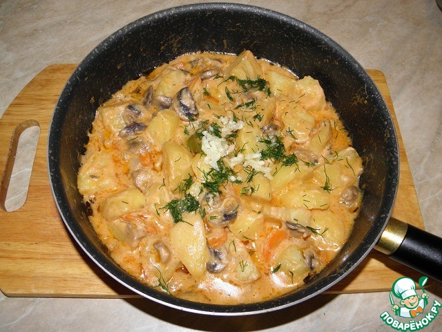 Жарко летом! Нам, конечно, блюда легкие нужны! Все с картошкой безупречно! А особенно грибы! Соус просто сказка будет! Нежный, бархатный, пикантный! Вся семья его полюбит! Очень вкусный, ароматный!
