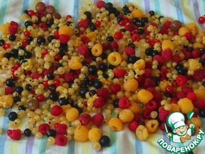 Любые летние ягоды ( у меня смородина трех цветов, малина красная и белая, крыжовник, все, что собрала со своего огорода) помыть. Высыпать на полотенце и обсушить. Ягоды могут быть любые, в любых вариантах и пропорциях. -