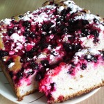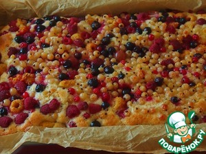 Сверху высыпать ягоды и поставить пирог в разогретую духовку и выпекать при температуре 180 градусов примерно 40 минут. Готовность проверить с помощью спички.
