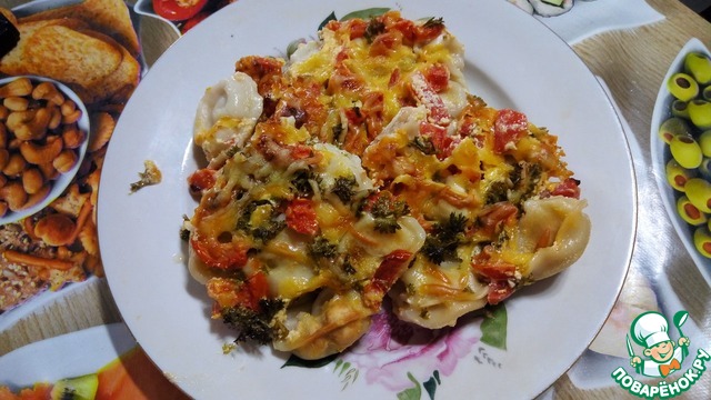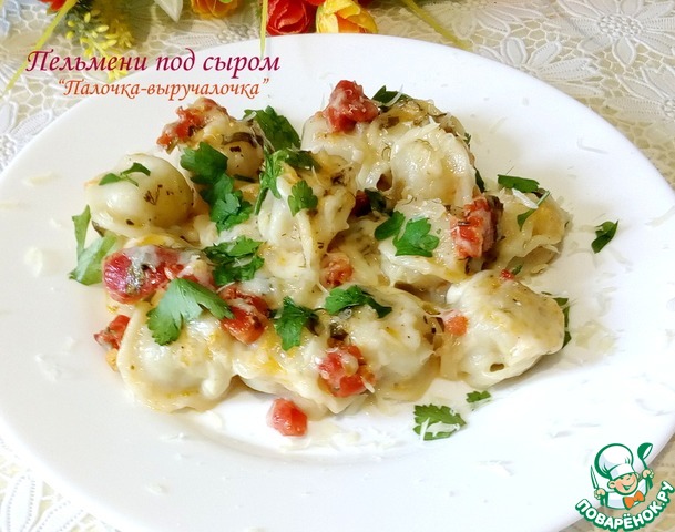 Рецепт «Пельмени под сыром "Палочка-выручалочка"»: