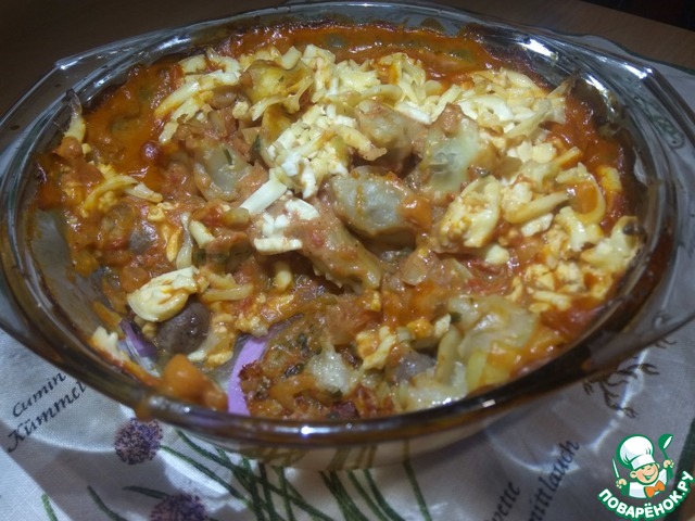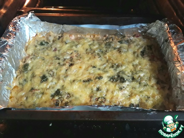 И отправляем опять в духовку на 10-15 минут, пока появится золотистая корочка