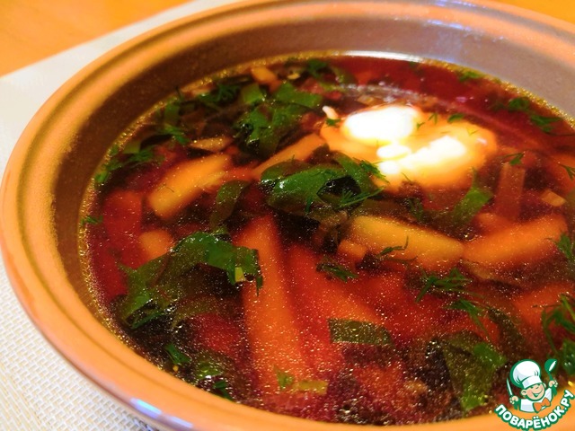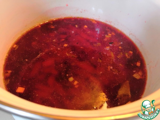 Супчик получается ярко-бордового цвета, электрическое освещение не позволило передать настоящую окраску)