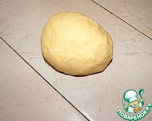 Замешиваем тесто. Получается вот такой, достаточно мягкий, эластичный колобок. Заворачиваем его в пленку и отправляем на 15-20 минут в морозилку.