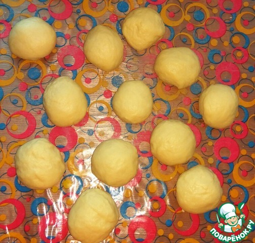 Подошедшее тесто разделить на 12 кусочков. Скатать колобки.