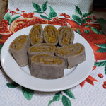Не рискнула пока я испечь бисквит из аквафабы, но вот тонким слоем всё пропеклось и получился замечательный рулет. К тому же совсем без сахара, а с полезным и натуральным заменителем. Муку тоже использовала не высшего сорта, чтобы уж совсем полезно было.