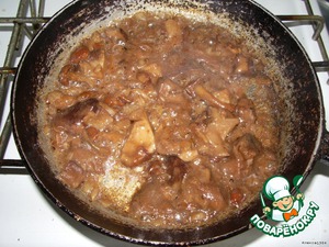 Вместе смешиваем грибы и язык и нашей смесью фаршируем мясо.