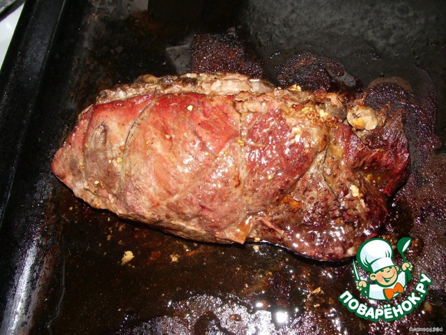 Кладём наше мясо на противень и ставим в духовку на 30-40 минут.