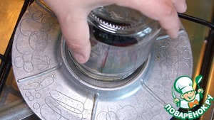 Тем временем стерилизуем тщательно промытые крышки и банки.