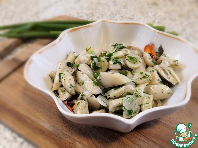. По сути - это солёные грибы, которые не нужно ждать после засолки. Всё время приготовления занимает около часа + охладить, если хотите.P.s. Если грибов довольно много и вы думаете, что за раз весь салат не съедят, то часть грибов можно переложить в банку, залить рассолом, в котором они варились и поставить в холодильник. Так они могут храниться несколько дней (сколько точно не знаю, у меня стояли 2-3 дня и всё было хорошо).