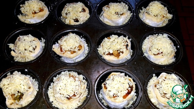 булочки. Верх посыпала измельчённым сыром. -