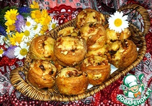 Очень мягкие, пышные булочки с шампиньонами, овощами и с сырной хрустящей корочкой. Начинка сочная и ароматная.