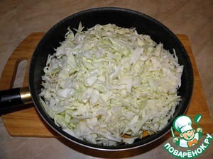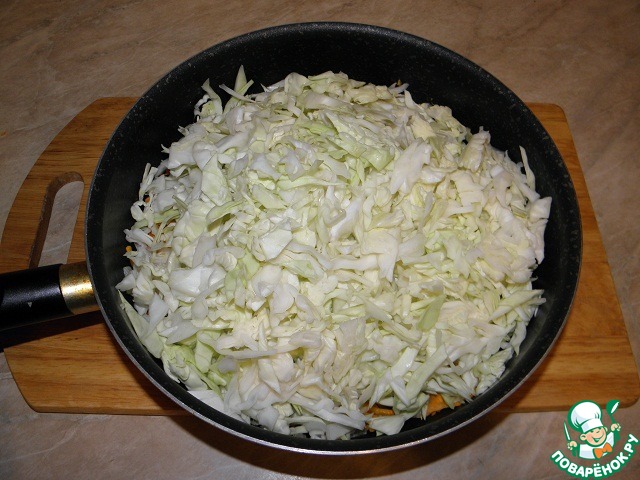 Шинкуем капусту и добавляем к луку с морковью