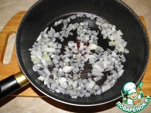 Посуду берем для тушения, сотейник, или широкая кастрюля с толстым дном. Лук нарезаем и обжариваем слегка на раст. масле.