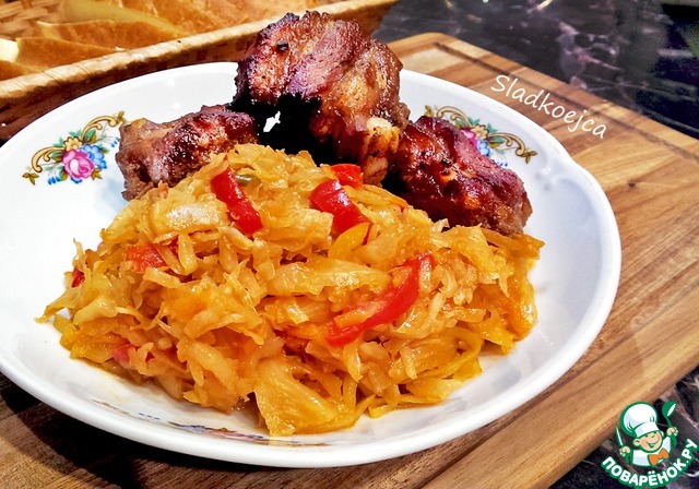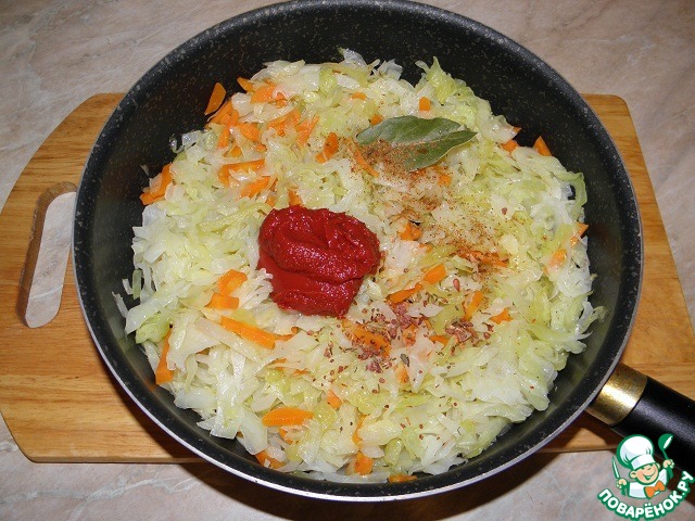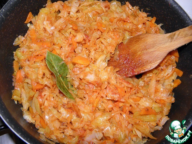 Накрываем крышкой и тушим пока она не станет мягкой, обязательно помешивая (это недолго, от капусты зависит, только чтобы не перетушить.)