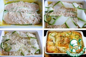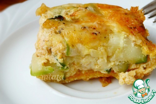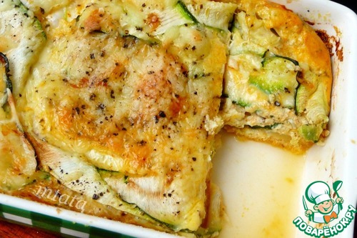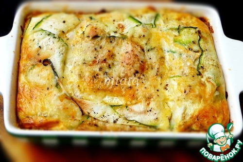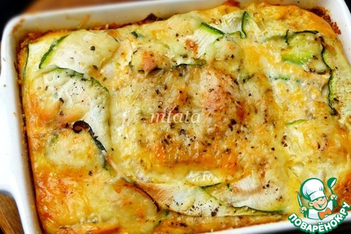 Залить немного яичной смесью, затем ещё слой цуккини, снова яичная смесь.