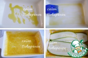 Форму для запекания (18х12х3,5 см) смазать оливковым масло, присыпать кукурузной крупой, излишки стряхнуть.