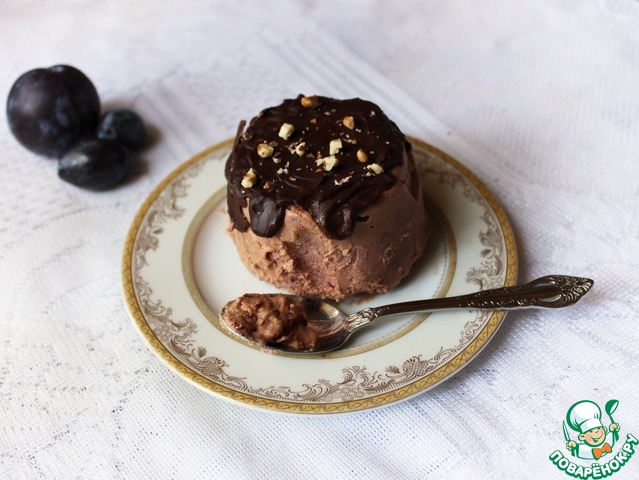 Если же Вы все таки дождались полного замерзания десерта, то предлагаю оформить порцию следующим образом. Растопите в свч или на водяной бане шоколад. Можете добавить ложечку коньяка, если это угощение для взрослых. А так же можете взять молочный, а не черный шоколад.