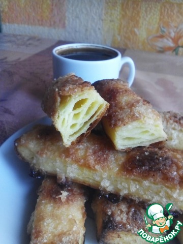 Первая половина ушла в мусор (делала слойки), на фото итог второй половины, а-ля язычки..