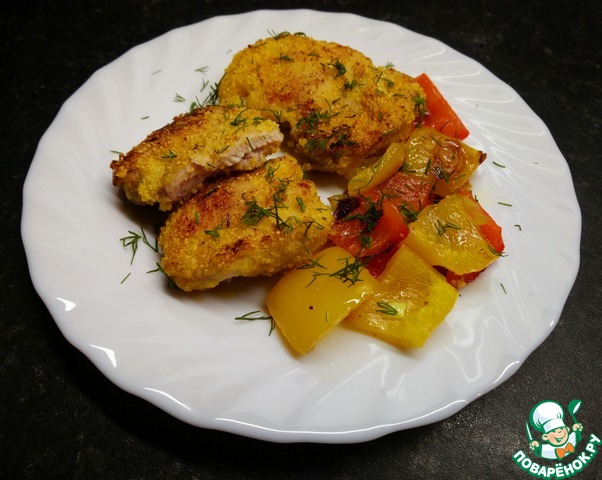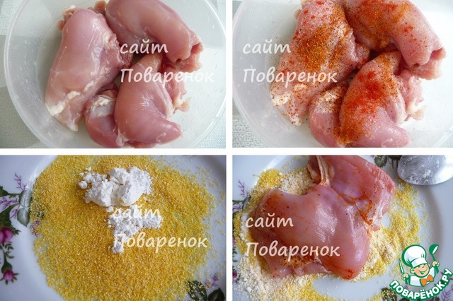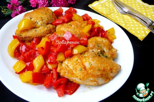 Предлагаю приготовить куриные бедра со сладким перцем. За основу взяла рецепт от Татьяны Назарук, спасибо большое. Панировку сделала на основе кукурузной крупы и крахмала, которая помогает сохранить сочность мясу и способствует образованию плотной румяной корочки. Получилось вкусное, сочное мясо с кисло-сладким перцем.