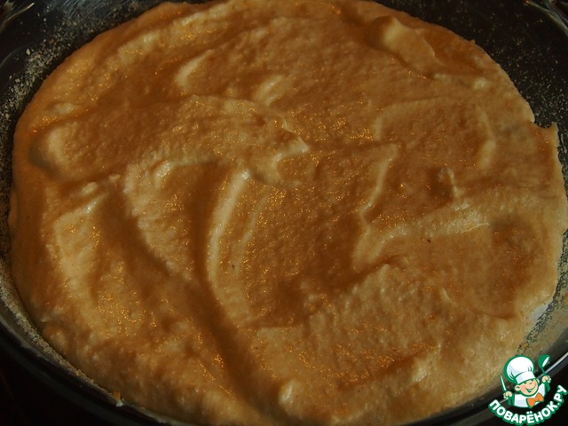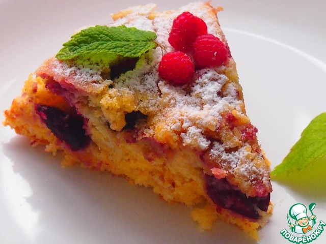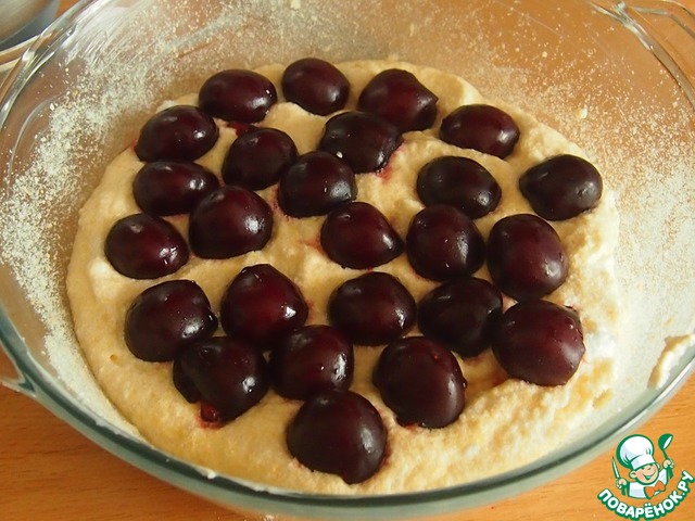 Половину теста выложить в форму, по поверхности разложить черешню.