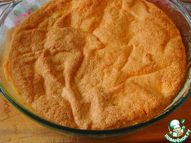 Яйца разделить на белки и желтки. Белки взбить до тугих пиков со щепоткой соли. Добавить ложку сахарной пудры и еще хорошенько взбить.