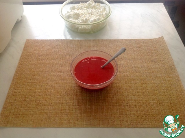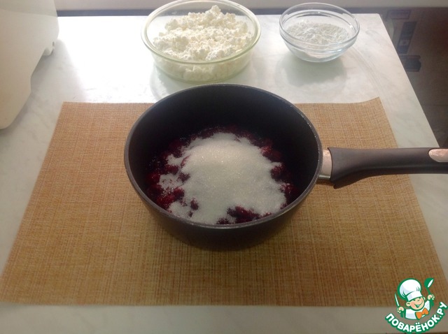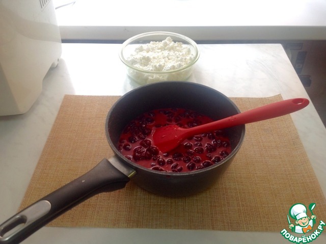 Выкладываем творог, а сверху вишню.