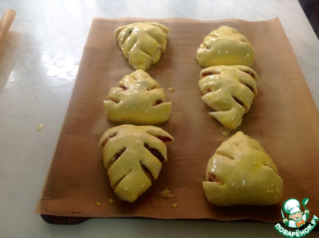 Смазываем желтком. Выпекаем при 180 градусах 20-25 минут.