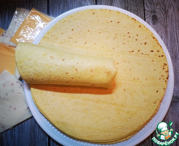 PS: я как то видела в продаже жёлтые тортильи, только в диаметре поменьше. Попробую с ними.