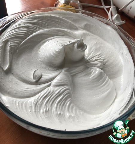 В чашу миксера вливаем охлажденные белки, добавляем щепотку соли и пару капель лимонного сока. В процессе взбивания постепенно добавляем сахар или сахарную пудру. Взбиваем минут 10-15 до образования густых пиков.