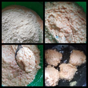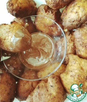 Всыпать муку и замесить тесто, получится гуще чем на оладьи. Разогреть масло во фритюре либо в кастрюле, я ложку окунала в холодную воду и набирала ей тесто, затем кидала в кипящее масло. Обжаривать до золотистого цвета, периодически переворачивать.