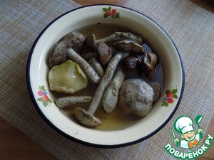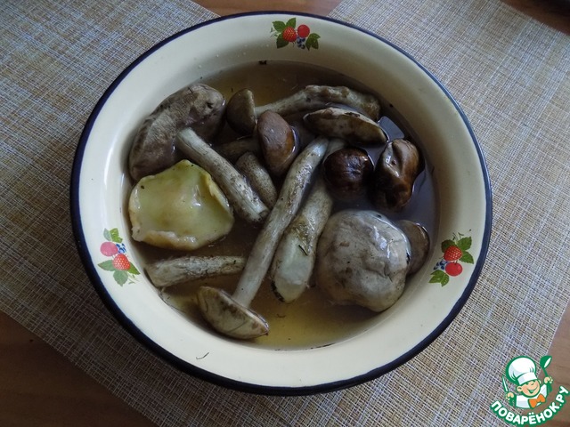 - Грибы (ёмкость стакана 250 мл, готовые отварные лесные грибы, у меня подберёзовики) — 1 стак.
