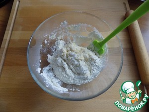 Как только тесто лопаткой замесится, начинаем работать руками. Тесто просто замечательное и к рукам не пристаёт.