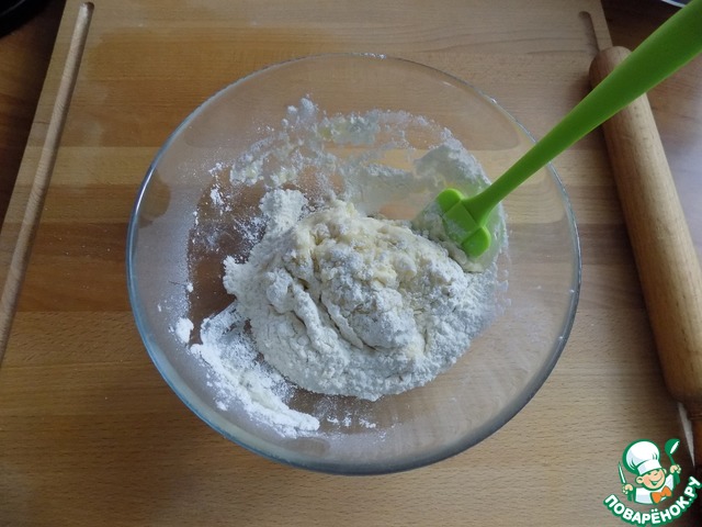 Скатываем тесто в шар и оставляем отдохнуть, пока будем делать начинку.