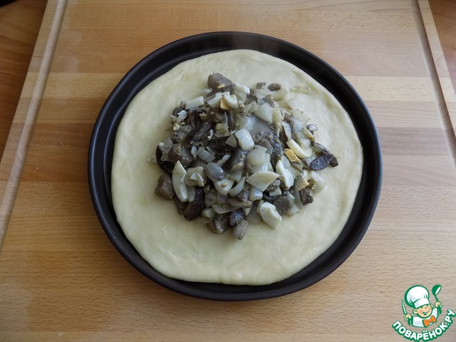 Делаем из теста форму для галеты. Шар из теста я приплюснула ладонями. Я буду делать галетту в форме для пиццы, она у меня D-30 см.