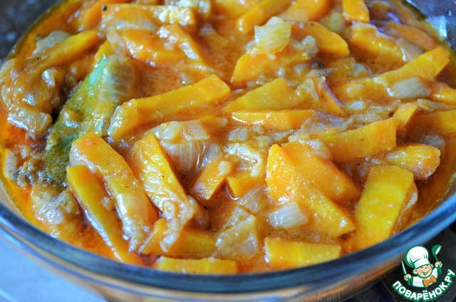 тушить 35 минут на минимальном нагреве, под крышкой.