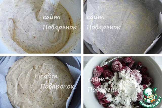 Разъемную форму диам.26-28см застелить пекарской бумагой.