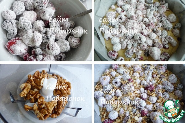 Хочу предложить простой, вкусный, сочный ягодный пирог с орехами - это просто сказка. Ягоды придают пирогу неповторимый аромат, а вкус усиливают орехи. Для этого сочного и яркого пирога нужно немного: остатки ягод из морозилки, орехи. Пирог в меру сладкий.