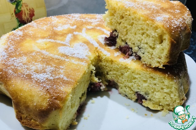 Остышый пирог присыпать сахарной пудрой, украсить листиками мяты (по желанию).