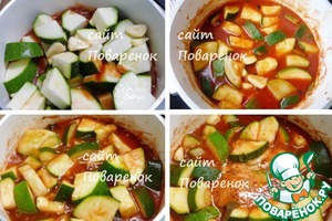 Цуккини в томате – ароматная домашняя закуска, которая украсит и дополнит любое застолье. Хрустящие цуккини в кисло-сладком соусе. Прекрасно сочетаются с молодым картофелем. Для любителей острого, можно добавить перец чили. Используем молодые цуккини.