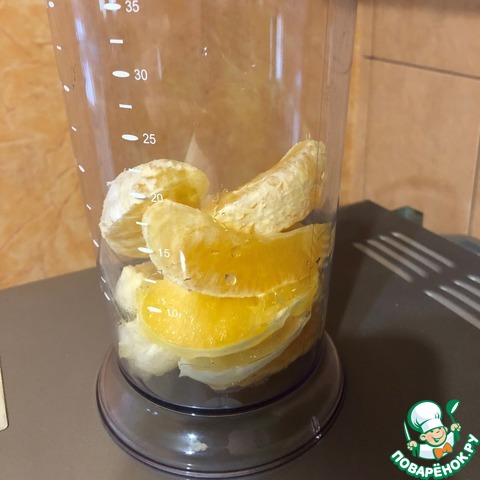 Для начала приготовим фруктовый слой. У меня это небольшие (с кулачок) лимон и апельсин. Фрукты очищаем от кожуры, удаляем косточки, если они есть. Превращаем в пюре блендером прямо вместе с оболочками долек. -