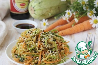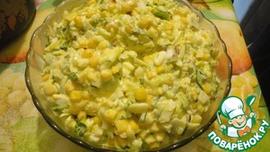 • Я не ждала когда кабачок остынет и замешала сразу салат.