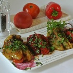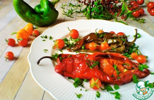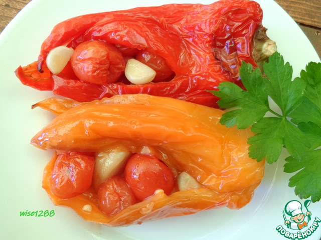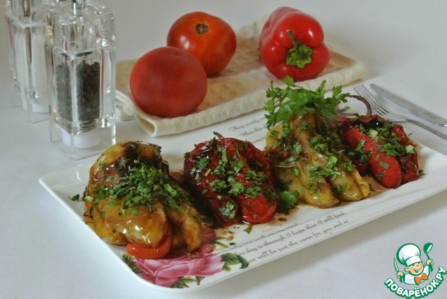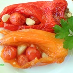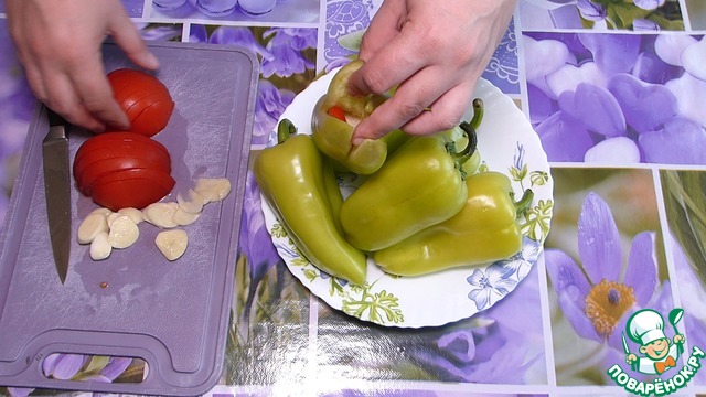Предлагаю Вашему вниманию рецепт приготовления вкусного блюда- запеченный перец в духовке с томатами и чесноком.